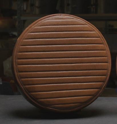 The Jonesy Tan-Stripe Tufted in Tan Italian Saddle Leather (inspired by the old Triumph motorcycle seat).