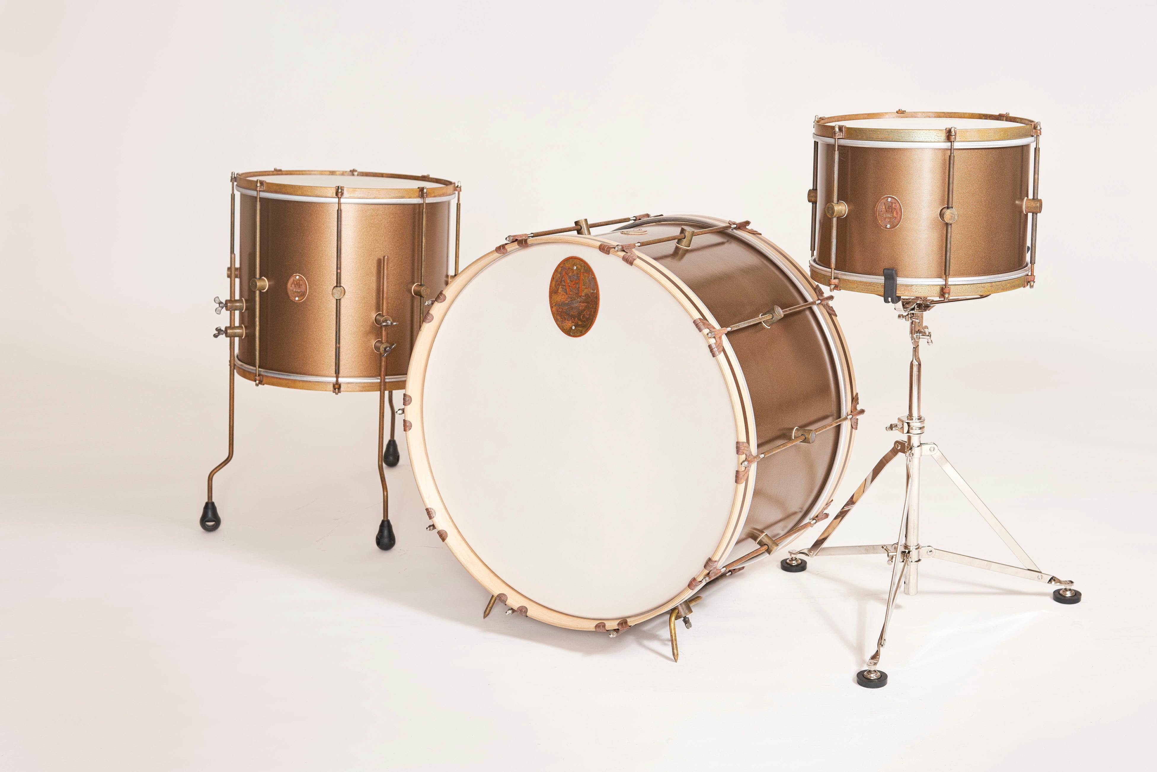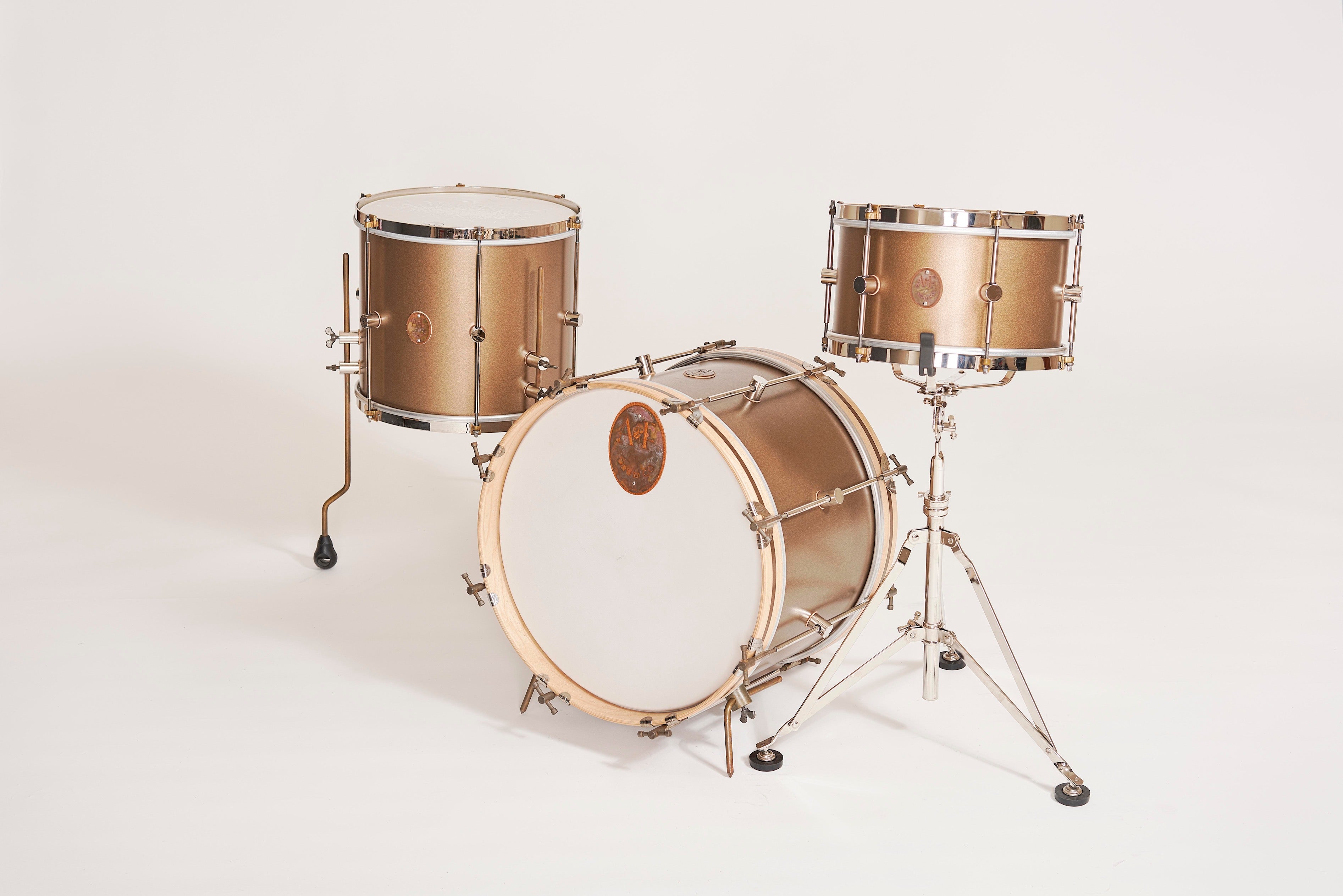 Much like our drums, the color is inspired by the 1930's Art Deco era and involves a very specific combination of paints and metallic specs which make it the vibrant and subtle gold sparkle that it is.