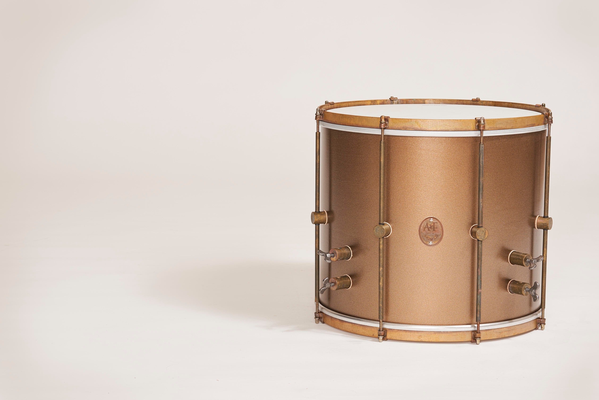 Our Deco Gold Maple Club Floor Tom is made with our exclusive thin 7-ply Maple/Poplar shells, no re-rings or inside edge, our outside reverse baseball bat edge, our exclusive Nickel Over Brass OR Raw Brass patented Hardware and matching hoops. These Toms have a incredible low-mid range, crisp attack, wide dynamic tuning range, AND are extremely microphone friendly!