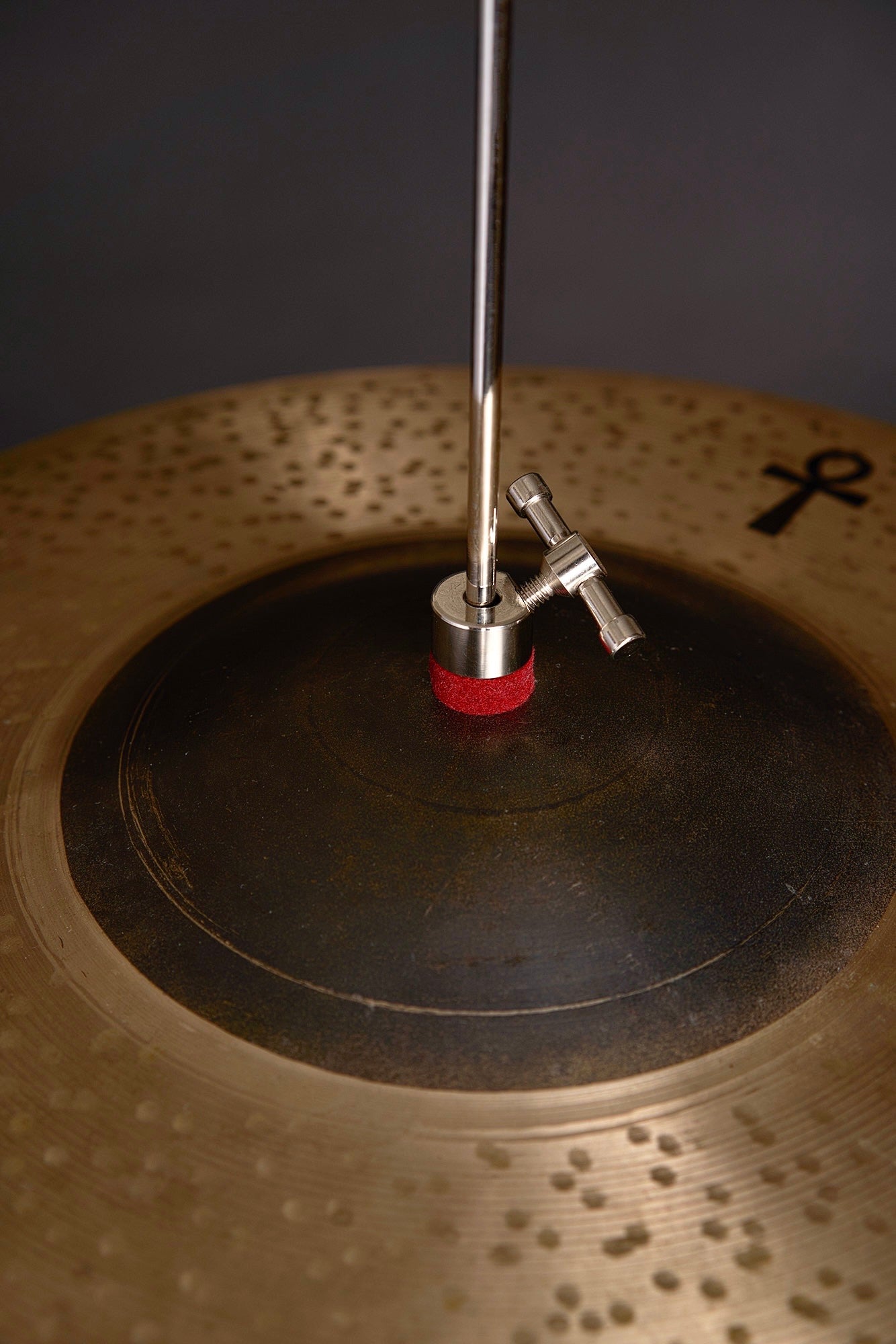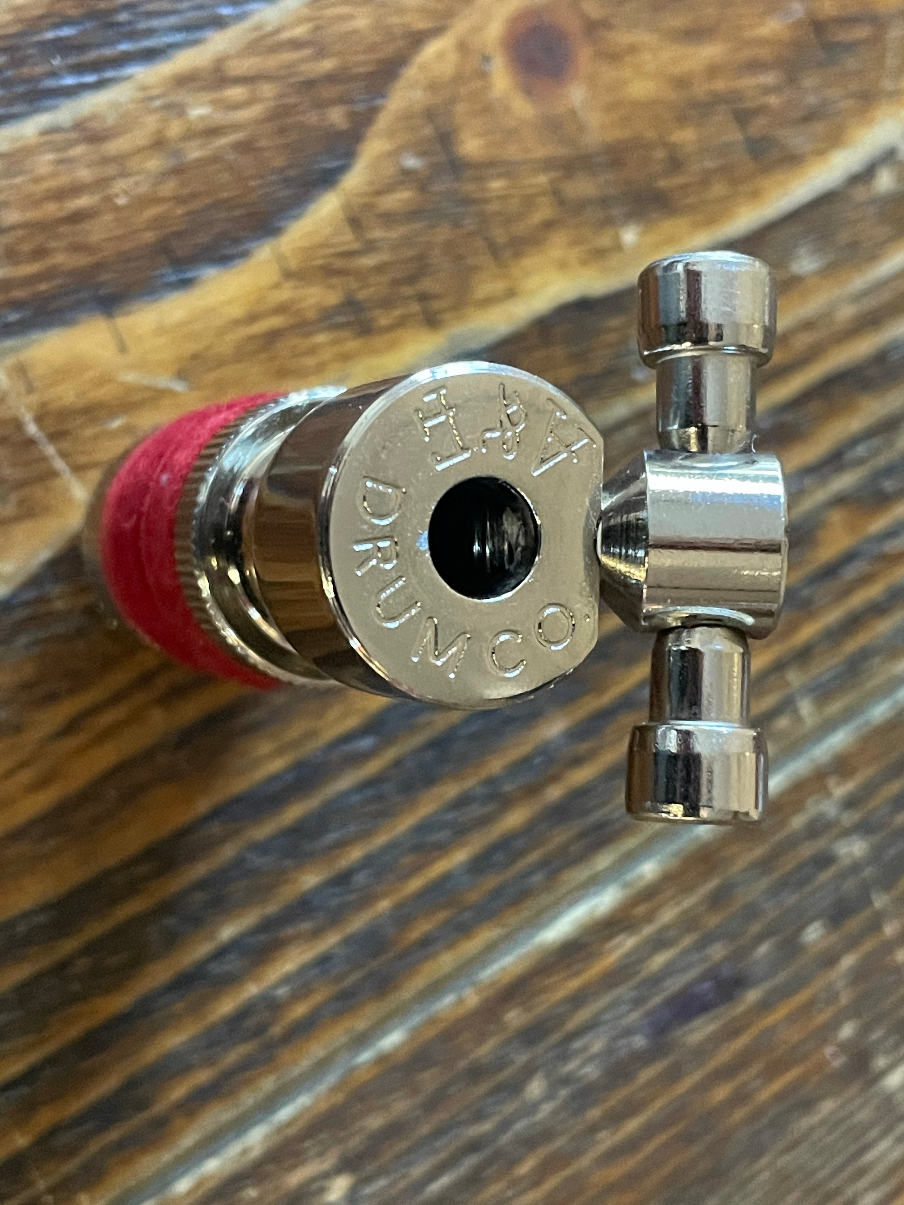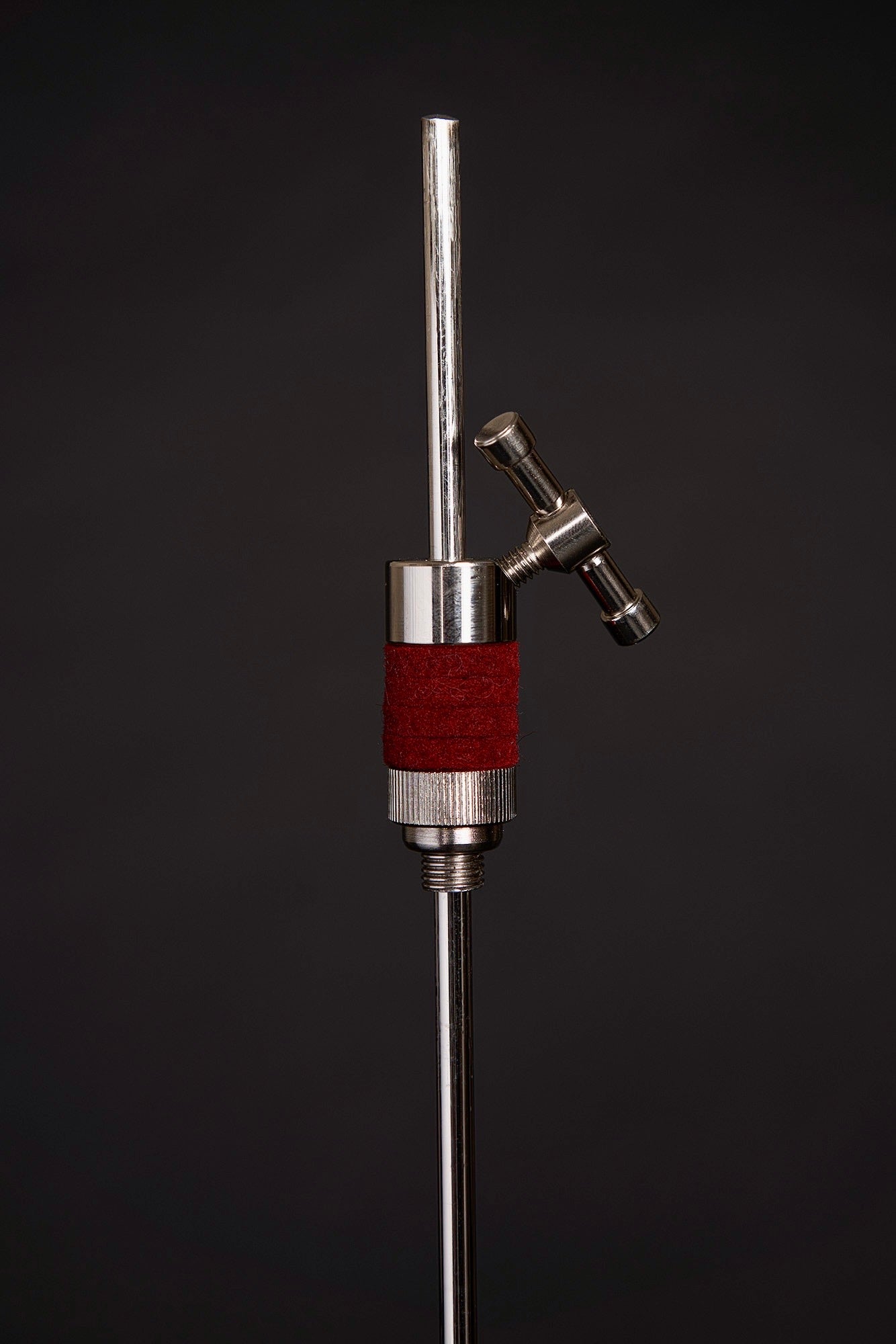 This is our low profile Nickel Hi Hat Clutch with red felts, 45 degree T-Handle, and latex coated threaded too and bottom nuts. Patented!