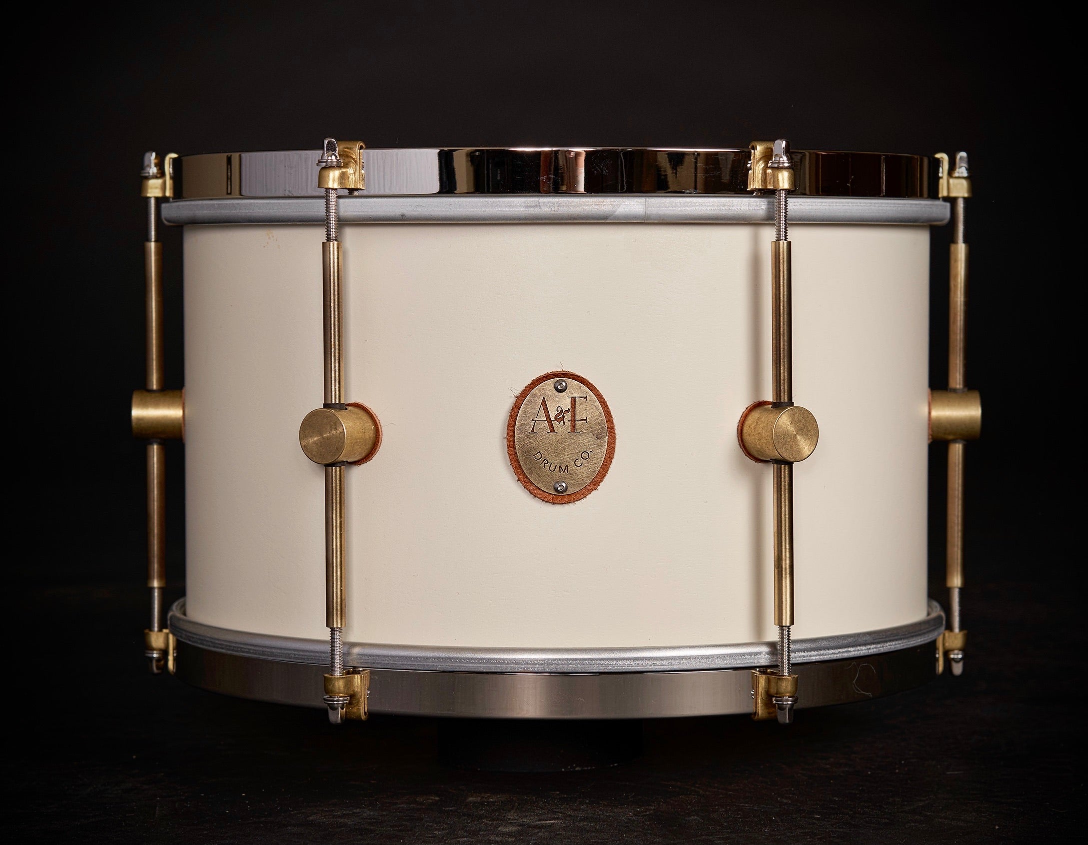 Inspired by a 1901 Vanguard Waltham 21 jewel Pocket Watch, the 1901 Limited Edition Antique White/Matte Black Maple Club Kits are made with our exclusive 7-ply Maple/Poplar shell with no inside edge or re-rings and a slight roundover outside edge. They come with our patented untreated raw lugs with nickel over brass hoops on toms and maple hoops on bass drums. Black Kits come with a whisky finish inside the shells and on the bass drum hoops.