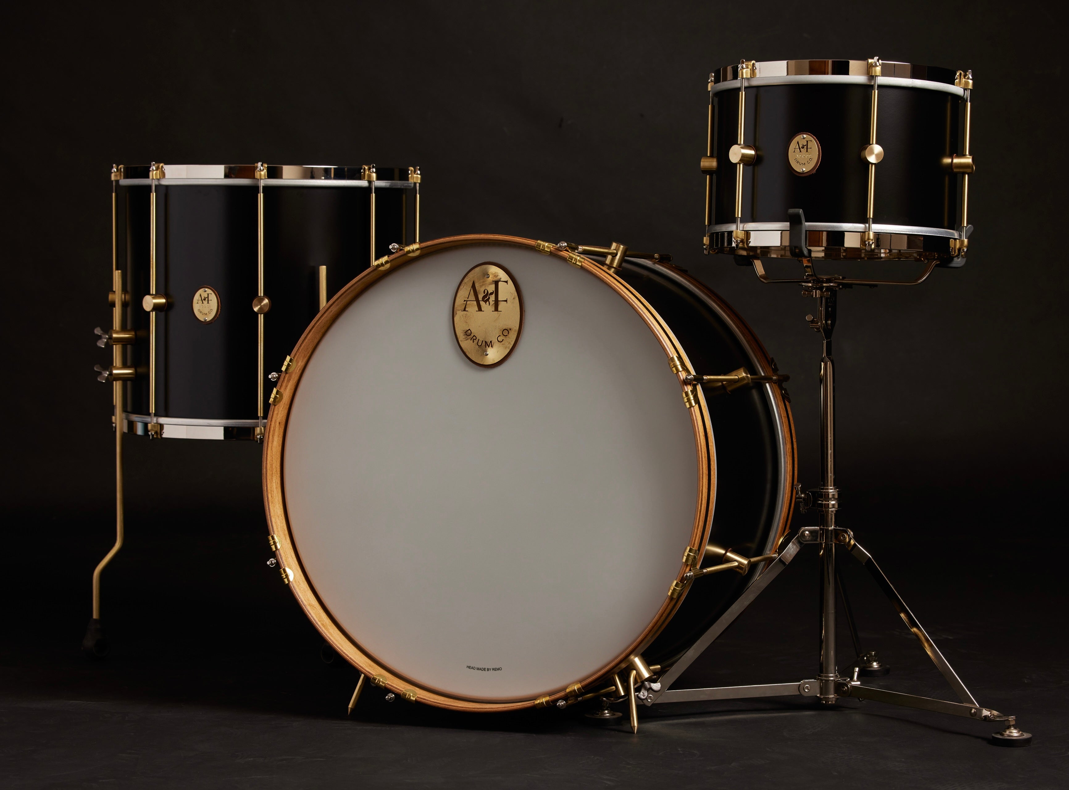 1901 Limited Edition Antique White/Matte Black Solid Maple (Steam Bent) Snares w/untreated Brass lugs & Nickel Over Brass Hoops. The color scheme was Inspired by a 1901 Vanguard Waltham Pocket Watch, which is where it gets it's name. Black Snares come with a whisky finish inside the shells.