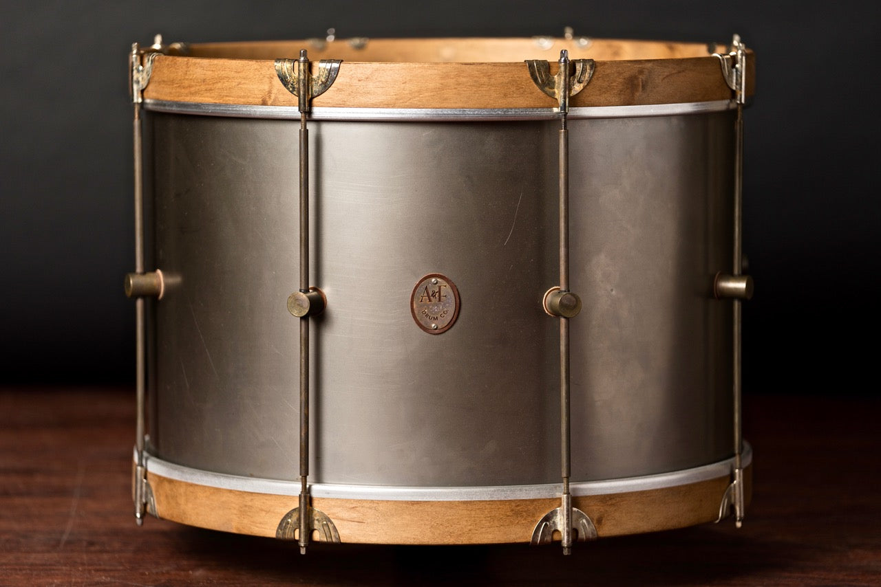 All Raw Steel kits are light weight and made from our exclusive Raw Steel shells, patented Raw Brass Lugs/Hardware, Whiskey Maple Hoops, and Remo Heads. We cut, roll, and weld the shells, cut straight 45 Degree edges, then leave them in their complete raw state. The Raw Steel Kits are dryer then our Royal and Copper kits, not loud by any means but tune lower then their sizes and have a perfect balance between punch, warmth, and attack. A sound engineers dream, they are extremely microphone friendly!