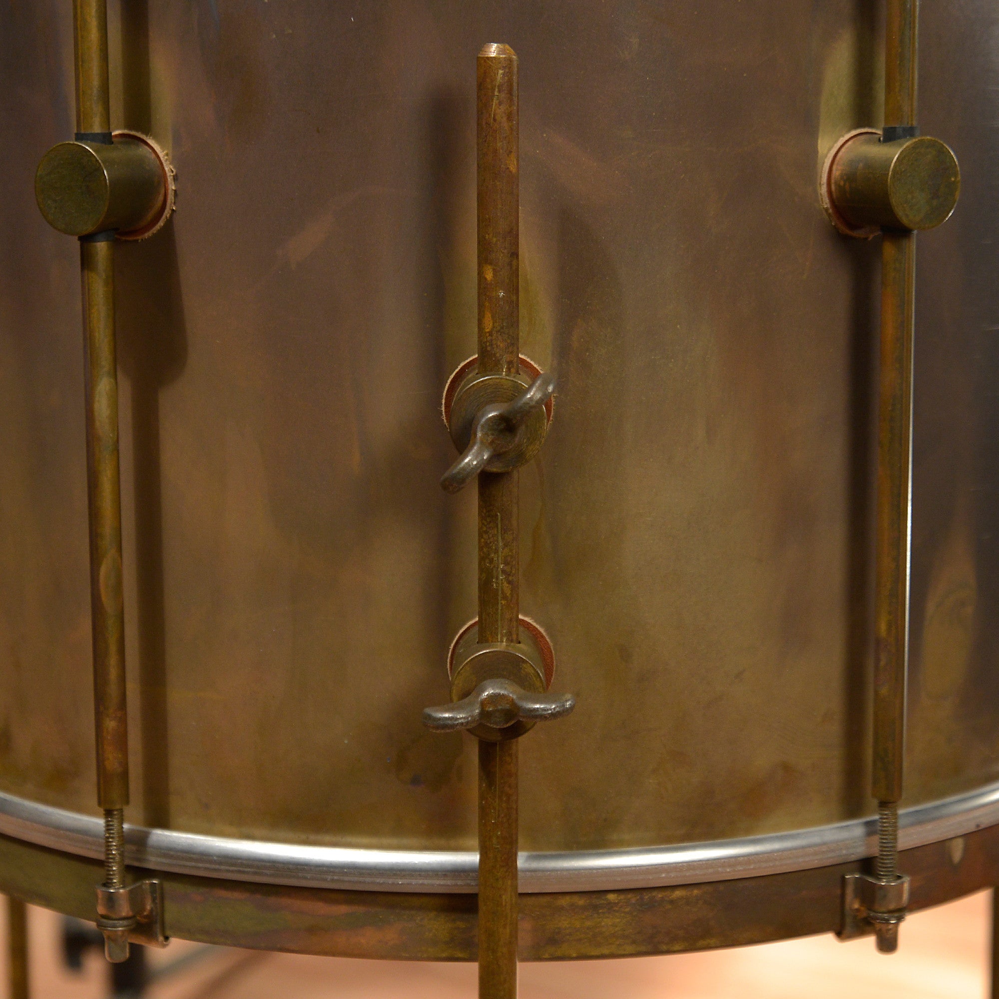 All Royal Kits are light weight and made from our patented raw brass shells, lugs, hoops, and hardware. They also come with Remo Ambassador heads. We cut, roll, weld and sand them, then treat them with our patented oxidizing formula to jump start the patina process, and cut straight 45 Degree edges. The kit tunes lower then their size balanced with perfect punch, warmth, & attack AND are extremely microphone friendly!