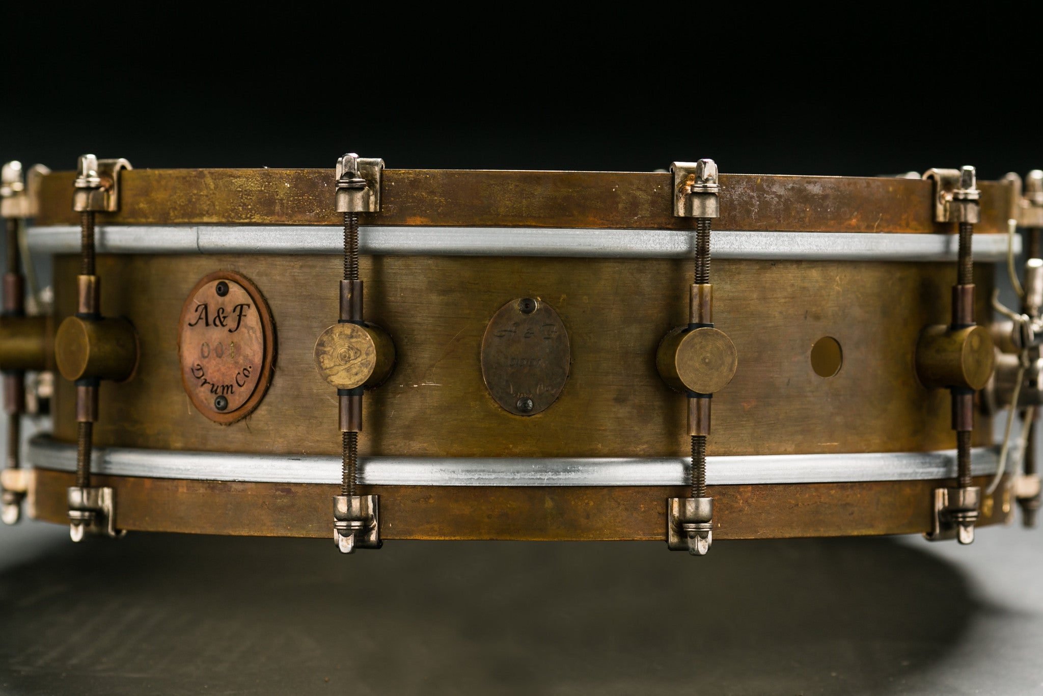 The first A&F Drum, the 4x14 Raw Brass Snare drum is an iconic take on the classic turn of the century european marching drums. Made of solid raw brass and Italian leather washers and are limited to only 100 in production.