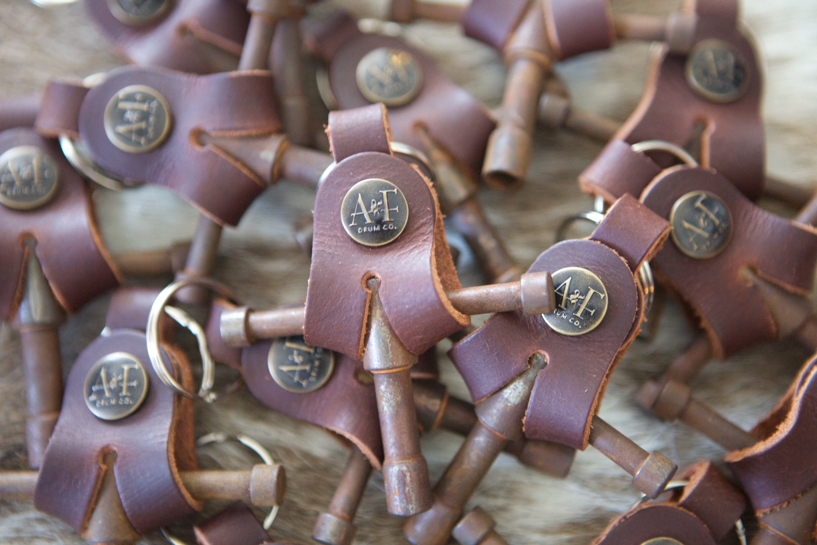 Exclusively designed, the A&F Drum Key is made of solid steel, put through our proprietary patina bath, and encased in a beautiful leather holster handmade by our dear friend Scott McPherson of Tackle Instrument Supply Co.