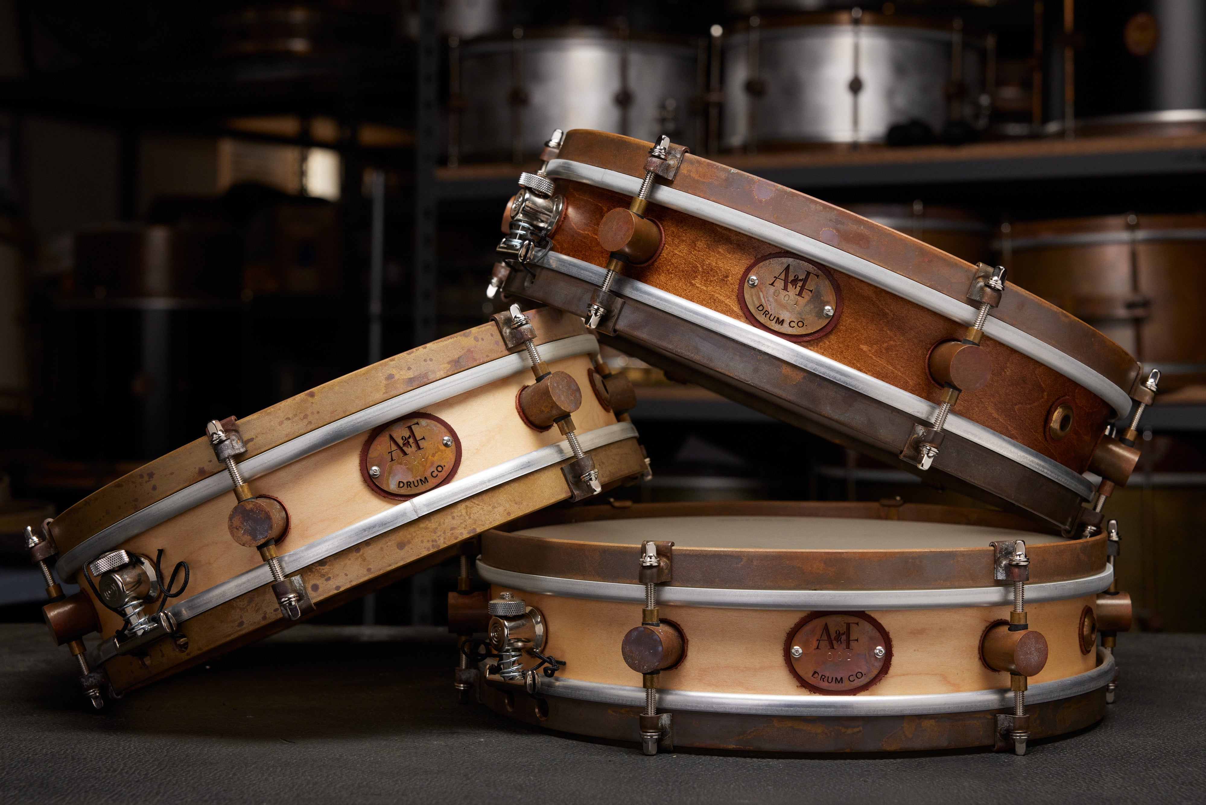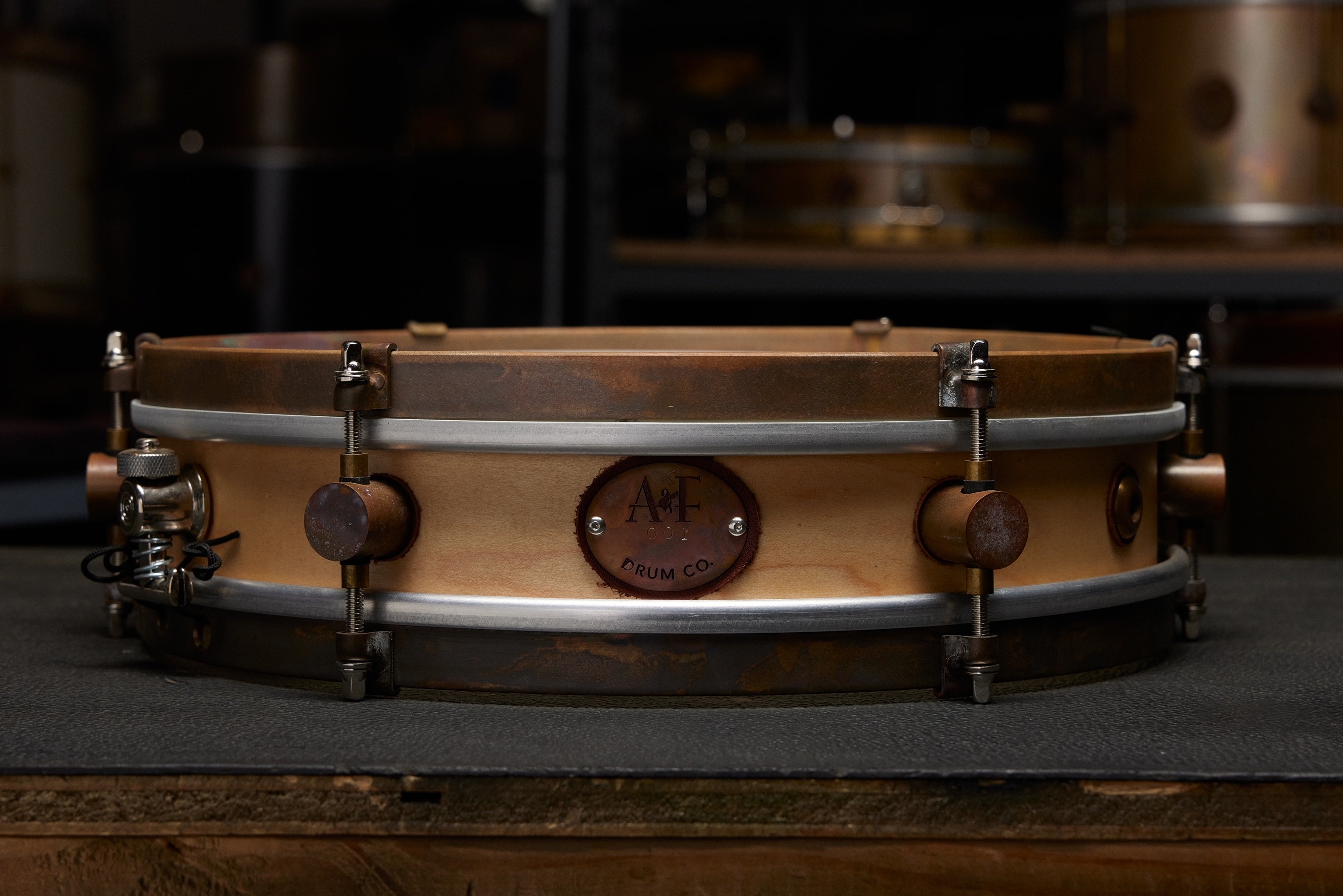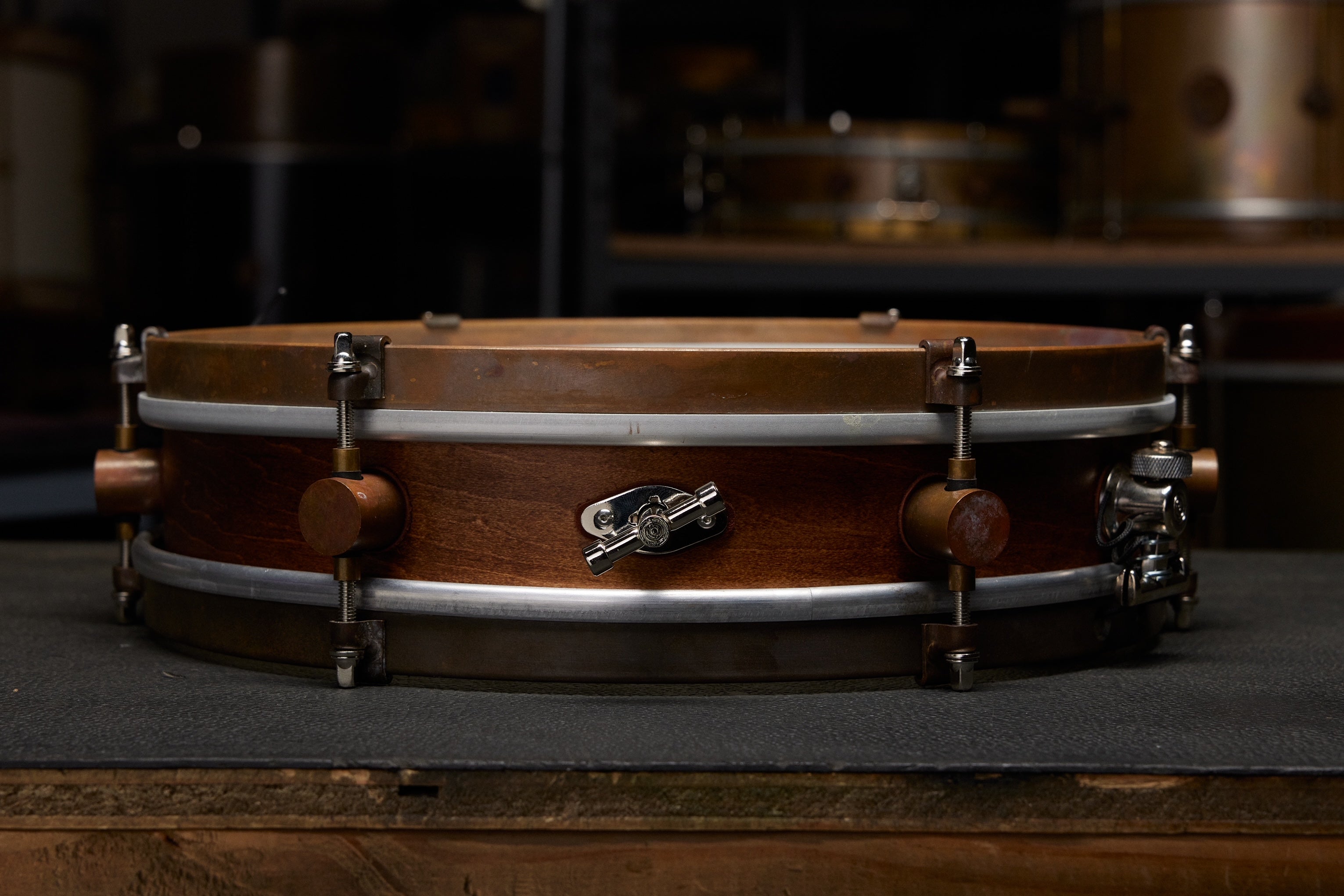 The Wood Rude Boy Snares -, 3x12, 3x13 6-lug, our exclusive 7-ply Maple/Poplar or Teak/Maple(Limited Edition) Wood shells with our patented Raw Brass Hardware and hand rolled and welded Raw Brass Hoops!